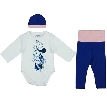3 részes kislány baba szett Minnie egér mintával Eredeti Disney termék Nagyon cuki ez a 3 részes szett, ami egy hosszú ujjú bodyt Minnie egér mintával, egy baba nadrágot és egy sapit tartalmazz. Bababarát, könnyen kezelhető pamut anyagból készült. A nadrág rugalmas pamutból, ami kényelmes és szabad mozgást biztosít a babának. A sapka elasztikus anyagának köszönhetően jól illeszkedik a babab fejére. Jól mosható, szín- és formatartó anyaga miatt garantáltan az anyukák kedvence is lesz! Minőségi magyar termék Nadrág és sapka anyaga: 90% pamut, 10% elasztán |