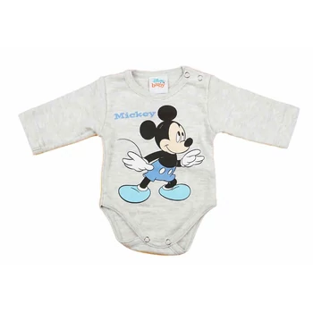 A hosszú ujjú baba body a kisbabák ruhatárának elengedhetetlen alapdarabja - ez a szürke színű, Mickey egér mintával díszített darab pedig igazán különleges választás lehet! Az eredeti Disney termék minőségi, 100% pamut anyagból készült, ami garantálja a szín- és formatartást, valamint jól bírja a gyakori mosást is. A vállán található patentok megkönnyítik a baba öltöztetését, míg a lába közötti patentos megoldás a gyors peluscserét teszi lehetővé. Minőségi magyar termék, amely nikkelmentes patenttal készül, így az erre érzékeny babáknál sem vált ki allergiás reakciót. Válassza ezt az I. osztályú baba body-t, amely tökéletes kiegészítője lesz babája ruhatárának!