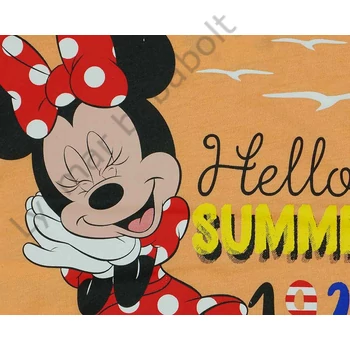 Kislányodnak szeretnél valami vidám, nyári viseletet? Akkor ez a Minnie egér mintás ujjatlan trikó tökéletes választás lesz! A rózsaszínű, 100% pamutból készült top remekül mutat a forró nyári napokon, miközben a gyermeked bőrét kényelmesen, légáteresztően öltözteti. A minta Minnie egér vidám arckifejezését ábrázolja, mely minden kislány mosolyát garantáltan előcsalogatja. Az eredeti Disney termék garantálja a minőséget és tartósságot, így a trikó mosás után is megőrzi színét és formáját. Büszkék vagyunk rá, hogy ez a termék magyar gyártású, így vásárlásod támogatja a hazai gyártókat. Kényeztesd gyermeked minőségi, hazai termékkel, ami mellett nem kell lemondanod a kedvenc Disney karakterekről sem!