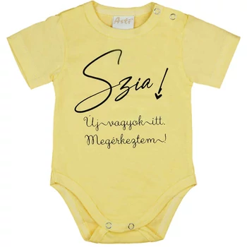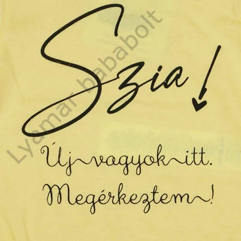 A baba bőre sokszor érzékeny és finom, ezért fontos, hogy a ruháik kényelmesek és minőségi anyagból készüljenek. Ezt a sárga, rövid ujjú feliratos baba bodyt 100% pamutból készítettük, ami lágyan simul a bőrére, és segít megőrizni természetes melegét. A body vékony, nyári viselet, így tökéletes választás a melegebb hónapokra. A lába között praktikus patenttal van ellátva, amely lehetővé teszi a gyors és könnyű peluscserét. A vállán szintén patentos, ami megkönnyíti a kisbabád öltöztetését. Büszkék vagyunk rá, hogy ez a termék magyar munka eredménye, és a legmagasabb minőségi elvárásoknak is megfelel. Különösen fontos kiemelni, hogy a termék nikkelmentes patenttal készül, így az erre érzékeny babák sem fognak allergiás reakciót tapasztalni. Adja át gyermekének a minőségi ruházat örömét ezzel a cuki feliratos bodyval!