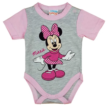 Kedves Minnie egér mintával díszített, rövid ujjú baba body, mely minden kis hercegnő számára elengedhetetlen darab lesz. Az eredeti Disney termék garantálja a kiváló minőséget és a stílusos megjelenést. A vállán található patentok segítségével könnyedén belebújtathatjuk a pici fejét, míg a lába közötti patentok a peluscserét könnyítik meg. Az 100% pamut anyagból készült body jól mosható, szín- és formatartó, így hosszú ideig megőrzi eredeti állapotát. Minőségi magyar termék, mely gondoskodik babája kényelméről és egészségéről is, hiszen a termék nikkelmentes patenttal készül, így nem vált ki allergiás reakciót az erre érzékeny babáknál.