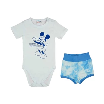 Rövidnadrágos kisfiú babaruha szett Mickey egér mintával Eredeti Disney termék A kétrészes összeállítások mindig praktikusak, hiszen jól variálhatóak, együtt és külön is hordhatóak. Ez a kétrészes szett egy magasderekú, batikolt anyagú rövidnadrágból áll, amihez tökélete passzol az egyszínű body elején vidám Mickey egér mintával. Mind a nadrág, mind a body enyhén elasztikus pamutból készült, ami szabad mozgást biztosít a picinek egész napra. Jól mosható, szín- és formatartó bababarát pamut anyagból gyártva az ASti műhelyében. Minőségi magyar termék Nadrág anyaga: 90% pamut, 10% elasztán |