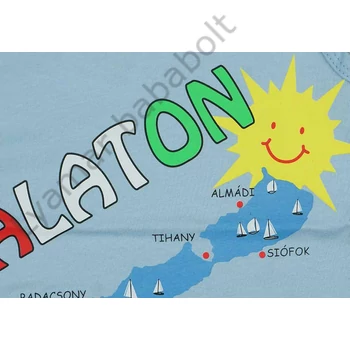 Ragyogjon kisfiad a nyári napsütésben ezzel a Balaton feliratos ujjatlan pólóval! Ez a kék színű, 100% pamutból készült atlétatrikó tökéletesen illik a forró nyári napokra. A vékony, mégis minőségi anyaga garantálja a tartósságot, a mosás után is szín- és formatartó marad. A Balaton felirat és a vidám minta pedig azonnal bulihangulatba hozza a viselőjét. Üdítően friss és trendi választás a nyári szezonra. Minőségi magyar termék, mely a legnagyobb igénybevételnek is bátran ellenáll. Anyaga: 100% pamut. Minőség: I. osztály.
