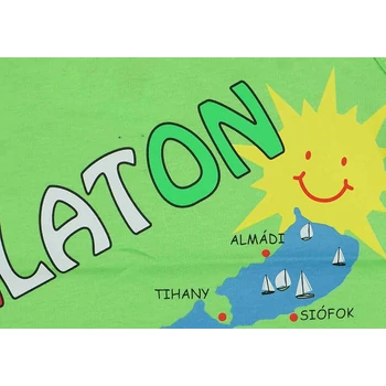Ebben az ujjatlan gyerek pólóban a kisfiúd igazi kis Balaton-parti hős lesz! A zöld színű, 100% pamut anyagból készült póló nemcsak divatos, hanem nagyon kényelmes is, tökéletes forró nyári napokra. A Balaton felirat és minta pedig a hazai nyaralás emlékeit idézi, legyen szó akár egy délutáni fagyizásról, vagy egy hűsítő fürdőzésről a tóban. A minőségi anyag jól bírja a mosást, szín- és formatartó, így biztos lehetsz benne, hogy a póló sokáig megőrzi szép zöld színét és alakját. Egy igazán minőségi magyar termék, amit büszkén adhatsz a gyermekedre.