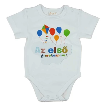 Rendkívül aranyos, gyereknapos mintával díszített rövid ujjú baba body, mely kisbabád számára felejthetetlenné varázsolja az első gyereknapot. A minőségi, bababarát pamutanyag garantálja a kényelmet és a tartósságot, így akár gyereknap után is bátran hordható, vagy eltehető emléknek. Magyarországról származó, nikkelmentes patenttal ellátott termék, amely nem okoz allergiás reakciót az erre érzékeny babáknál. A fehér szín pedig unisex, így lányoknak és fiúknak is tökéletes választás lehet. Büszkék vagyunk rá, hogy ez a termék minőségi magyar munkát képvisel: 100% pamutból készült és I. osztályú minőséget képvisel.