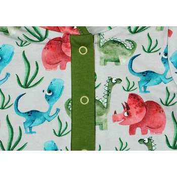 Mindegyik apró kalandor számára ideális választás ez a dinós kapucnis hosszú ujjú overál! Legyen szó belső vagy külső környezetről, ez a rugalmas overál tökéletes viseletet biztosít a kis mozgóművészek számára. Az overál lábszárain található dupla passzé nagy segítség a szülők számára, hiszen a gyorsan növekvő kicsiknek hosszabb ideig szolgálhat kényelmes öltözékként - a ruha egyszerűen együtt növekszik a gyermekkel. A dínó taraj az oldalán pedig hozzáadja az overálhoz azt az extra vagány stílust, amit a kicsik imádnak! Magyarországon készült, első osztályú minőségű termék, melynek anyaga 100% pamut, így puha, kényelmes és könnyen mosható. A zöld szín pedig remekül kiemeli a dínós karaktert. Ezzel az overállal a kaland sosem ér véget!