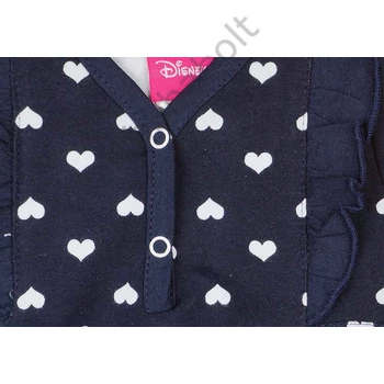 Eredeti Disney termék, amely kis lányod számára hozza el Minnie egér cuki varázsát! A Disney Minnie szívecskés hosszú ujjú overál sötétkék alapon tündököl, a rajta elszórt fehér szívecskék pedig igazán játékossá teszik. A különleges fodros vállrész igazi eleganciát kölcsönöz a rugdalózónak, ami garantáltan minden kislány kedvence lesz. Az overál anyaga puha, bababarát, így nem csak cuki, de kényelmes viseletet is biztosít. A mellkhasnál található pattentok segítségével az öltöztetés is könnyedén megy, így nem kell aggódnod a reggeli rohanásban sem. A lábfej nélküli fazon pedig még több mozgásszabadságot biztosít a kicsiknek. A minőségi magyar termék 90% pamutból és 10% elasztánból készült, ami hosszú élettartamot és kiváló minőséget garantál. Minősége I. osztályú, így biztos lehetsz benne, hogy a legjobbat választod gyermeked számára.