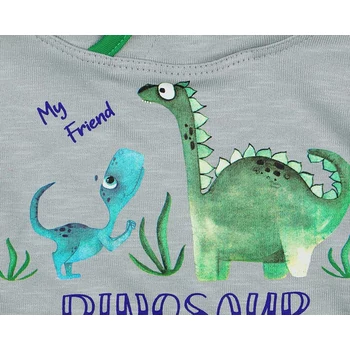 Tedd még izgalmasabbá kisfiad szabadidős pillanatait ezzel a 2 részes dinós mintás szettünkkel! A rajta lévő vidám dinó mintás kenguruzseb és kapucni garantáltan mosolyt csal minden kalandvágyó kisfiú arcára. A szettben található lezser kapucnis pulóver tökéletes választás a szaladgáláshoz vagy otthoni játszáshoz, hiszen kényelmes viselet és bőrbarát, köszönhetően a magas pamuttartalomnak. A szabadidő nadrág derekán található gumírozás pedig biztosítja, hogy a legnagyobb játékban sem csúszik le. Az oldalán található két zseb praktikus tárolóhelyet biztosít a kincseknek, míg a dinó taraj az, ami igazán vagánnyá teszi. A szett könnyen kezelhető, jól mosható, szín- és formaálló, így hosszú távra szóló befektetés a gyermek gardróbja számára. Minőségi magyar termék, anyaga: 90% pamut, 10% elasztán, minőség: I. osztály.