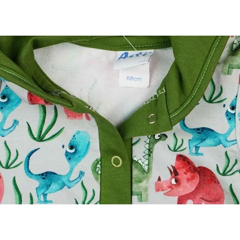 Mindegyik apró kalandor számára ideális választás ez a dinós kapucnis hosszú ujjú overál! Legyen szó belső vagy külső környezetről, ez a rugalmas overál tökéletes viseletet biztosít a kis mozgóművészek számára. Az overál lábszárain található dupla passzé nagy segítség a szülők számára, hiszen a gyorsan növekvő kicsiknek hosszabb ideig szolgálhat kényelmes öltözékként - a ruha egyszerűen együtt növekszik a gyermekkel. A dínó taraj az oldalán pedig hozzáadja az overálhoz azt az extra vagány stílust, amit a kicsik imádnak! Magyarországon készült, első osztályú minőségű termék, melynek anyaga 100% pamut, így puha, kényelmes és könnyen mosható. A zöld szín pedig remekül kiemeli a dínós karaktert. Ezzel az overállal a kaland sosem ér véget!
