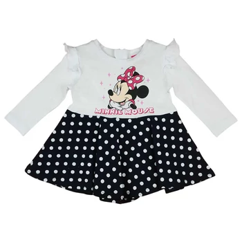 Csodálatos Minnie egér mintával díszített, hosszú ujjú lányka ruhánk garantáltan a kislányod kedvence lesz! Az eredeti Disney termékünk nem csak szuper cuki, de kényelmes is, hiszen elasztikus pamut anyagból készült, melynek köszönhetően tökéletes választás mindennapi viseletre. A vállán található fodrok pedig még különlegesebbé teszik ezt a ruhát. Hátul cipzáras kialakításának köszönhetően könnyen felvehető és levehető. Büszkék vagyunk rá, hogy ez a termék magyar eredetű. Minőségét tekintve I. osztályú, anyagösszetétele 90% pamut és 10% elasztán. Ezzel a ruhával a kislányod igazi Disney hercegnőnek érezheti magát!