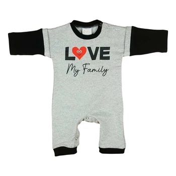 A "Love my family" feliratos hosszú ujjú rugdalózó igazi kincs kisfiúknak. A szürke színű, vállon patentos kialakítású ruhadarabot különlegessé teszi a rajta szereplő kedves üzenet, mely minden nap emlékeztet, hogy milyen fontos a család. A rugdalózó Magyarországon készült, minőségi anyagokból. A 90% pamut és 10% elasztán összetétel biztosítja a rugalmasságot és a kényelmet, melyek elengedhetetlenek a pici baba bőrén. Az I.osztályú minőség garantálja, hogy a ruha hosszú ideig megőrzi szépségét, még a gyakori mosás ellenére is. A termékben található nikkelmentes patentok gondoskodnak arról, hogy a baba bőre ne irritálódjon, és az erre érzékeny kisgyermekek is bátran viselhetik. Fedezze fel ezt a csodás, magyar készítésű rugdalózót, és adjon gyermekének valami igazán különlegeset!