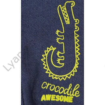 A kisfiúk imádni fogják ezt a kék színű, hosszú ujjú rugdalózót, amelyen mókás krokodilos minta díszeleg. Az elöl található patentok segítségével könnyedén felvehető és levehető, így a pelenkázás is gyerekjáték lesz. A farmer hatású anyag pedig igazán stílusossá varázsolja a kis viselőjét. A rugdalózó Magyarországról származik, így biztos lehet benne, hogy kiváló minőségű, tartós anyagokból készült. A 80% viszkóz, 15% poliamid és 5% elasztán összetétel pedig garantálja, hogy puha, kényelmes és rugalmas lesz, tökéletesen idomulva a kicsi mozgékony testéhez. Ez a rugdalózó nem csak praktikus, hanem divatos is - a krokodilos minta bájos és vidám hangulatot kölcsönöz neki, így a kisfiúk biztosan szívesen viselik majd. Egy igazi minőségi magyar termék, amely minden kisfiú ruhatárában megállja a helyét!
