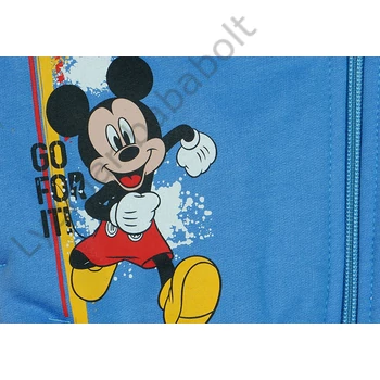 Egy igazi Disney rajongónak szánt, középkék színű, Mickey mintás fiú mellény. Az eredeti Disney termék garantálja a minőséget és a tartósságot, így a kicsik kedvenc rajzfilmjének szereplőjével díszített ruhadarab hosszú ideig örömöt szerezhet. A mellény oldalt zsebes kialakítású, így a gyermek apró kincsei is elférnek benne, az elöl található cipzár pedig megkönnyíti a fel- és levételt. A belső oldala bolyhos, ami extra meleget és komfortot biztosít a hidegebb napokon. Egy minőségi magyar termék, melynek anyagösszetétele 65% pamut és 35% poliészter, így puha tapintású, kényelmes viselet, ugyanakkor könnyen tisztítható. Az I. osztályú minőségű anyag hosszú élettartamot és tartósságot biztosít.