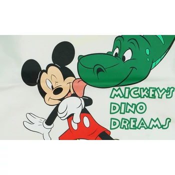 Merüljön el Mickey Egér varázslatos világában a kisfiával ezzel a stílusos, hosszú ujjú pólóval. A pólót díszíti a mindig vidám és kalandra kész Mickey Egér dinoszauruszos grafikája, ami garantáltan mosolyt csal a kisfiú arcára. A fehér színű pólót Magyarországon gyártották, biztosítva a kiváló minőséget és tartósságot. A 100% pamut anyaga pedig biztosítja a kényelmet és a könnyű moshatóságot. Az eredeti Disney termék garantálja a hiteles Mickey mintát. A hosszú ujj ideális választás a hűvösebb napokra. Tökéletes ajándék minden kis Disney rajongónak!