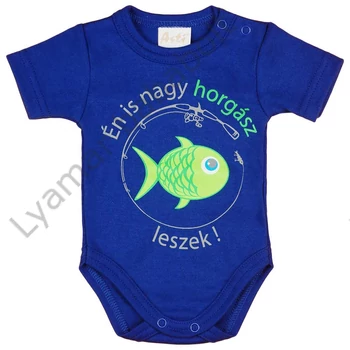 "Én is nagy horgász leszek" feliratos rövid ujjú baba body kék