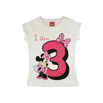 Ünnepeld meg kislányod harmadik születésnapját ezzel a csodálatos, Disney Minnie-s mintával ellátott pólóval! A fehér színű, rövid ujjú póló a legszuperebb ajándék lehet a nagy napra. Minnie egér, a legkedvesebb Disney karakter vigyorog vissza a pólóról, amit még tovább emel a glitteres díszítés. Az "I AM 3" felirat, ami azt jelenti, hogy "3 éves vagyok", mindenki számára hirdeti, hogy milyen fontos nap van ma. A póló 100% pamutból készült, ami a legkellemesebb viseletet biztosítja a kis ünnepelt számára. Ez az eredeti Disney termék Magyarországon készült, és minőségi I. osztályú anyagból készült. Minnie egérrel a születésnap még vidámabb lesz!
