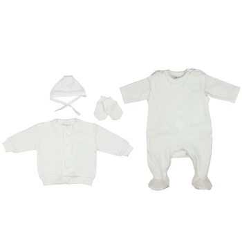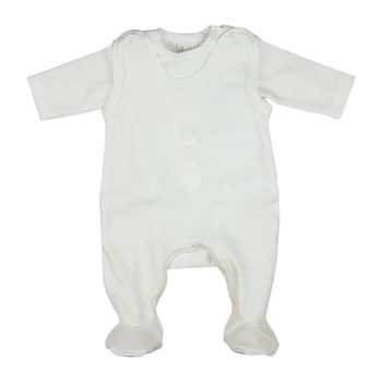 Puha és bájos macis 5 részes baba szett, ami ideális újszülött hazahozós szett fiúknak és lányoknak. Tartalma: rugdalózó, body, kardigán, sapka, kesztyű. 100% pamutból, nikkelmentes patentokkal készült, magyar termék. Cuki hímzett maci mintával. |