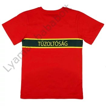 Egy igazi kis hősnek érezheti magát a csemetéd ebben a tűzoltós fiú rövid ujjú pólóban. A piros színű, rövid ujjú póló igazán élénk és vidám, mely garantáltan feldobja a fiad ruhatárát. A tűzoltós mintával nyomott design igazán egyedivé és játékoskodóvá teszi a pólót. Egy igazán minőségi magyar termék, mely 100% pamut anyagból készült, így biztosítja a kényelmet és a tartósságot. I. osztályú minőség, ami garantálja, hogy a póló hosszú ideig ellenáll az aktív, játékos napoknak.