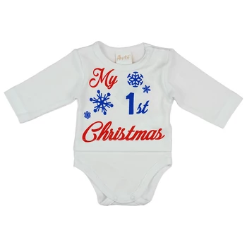 Ünnepelje meg kisbabája első karácsonyát ezzel a hosszú ujjú, fehér kombidressz baba bodyval, amelyen a "My first Christmas" felirat látható. A vállán patentos kialakítás garantálja a könnyű öltöztetést, így a karácsonyi készülődés során is kényelmes viseletet biztosít a legkisebbeknek. A body 100% pamutból készült, ami puha, kellemes tapintású és kiváló minőségű - ideális a babák érzékeny bőréhez. A magyarországi gyártású, I. osztályú termék nikkelmentes patenttal készül, így a babák bőre ellenáll az allergiás reakcióknak. Tegye felejthetetlenné babája első karácsonyát ezzel a kedves és kényelmes bodyval!