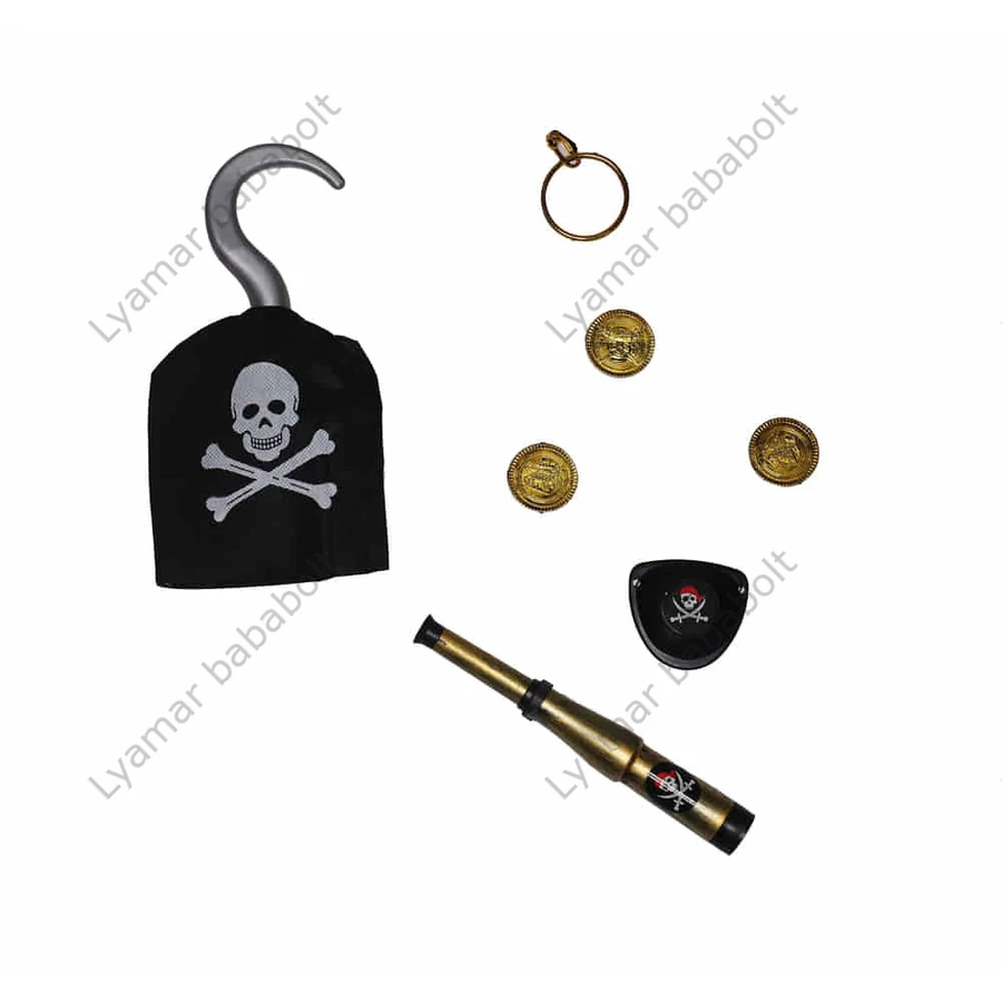 Kalóz jelmez távcsővel Minden kisfiú álma, hogy Kalóz lehessen, most pedig ezzel a jelmezzel ez a vágy valóra válhat! A szett tartalmaz egy halálfejes kampókezet, egy távcsövet, egy szemkötőt és kalóz érméket így tökéletesen visszaadja Hook kapitány ikonikus megjelenését, és garantáltan hatalmas sikert fog aratni a gyerkőcök körében. Hagyd, hogy gyermeked betöltse a Hook kapitány szerepét. Ebben a jelmezben bármilyen kalandra készen áll a kis kalózod!