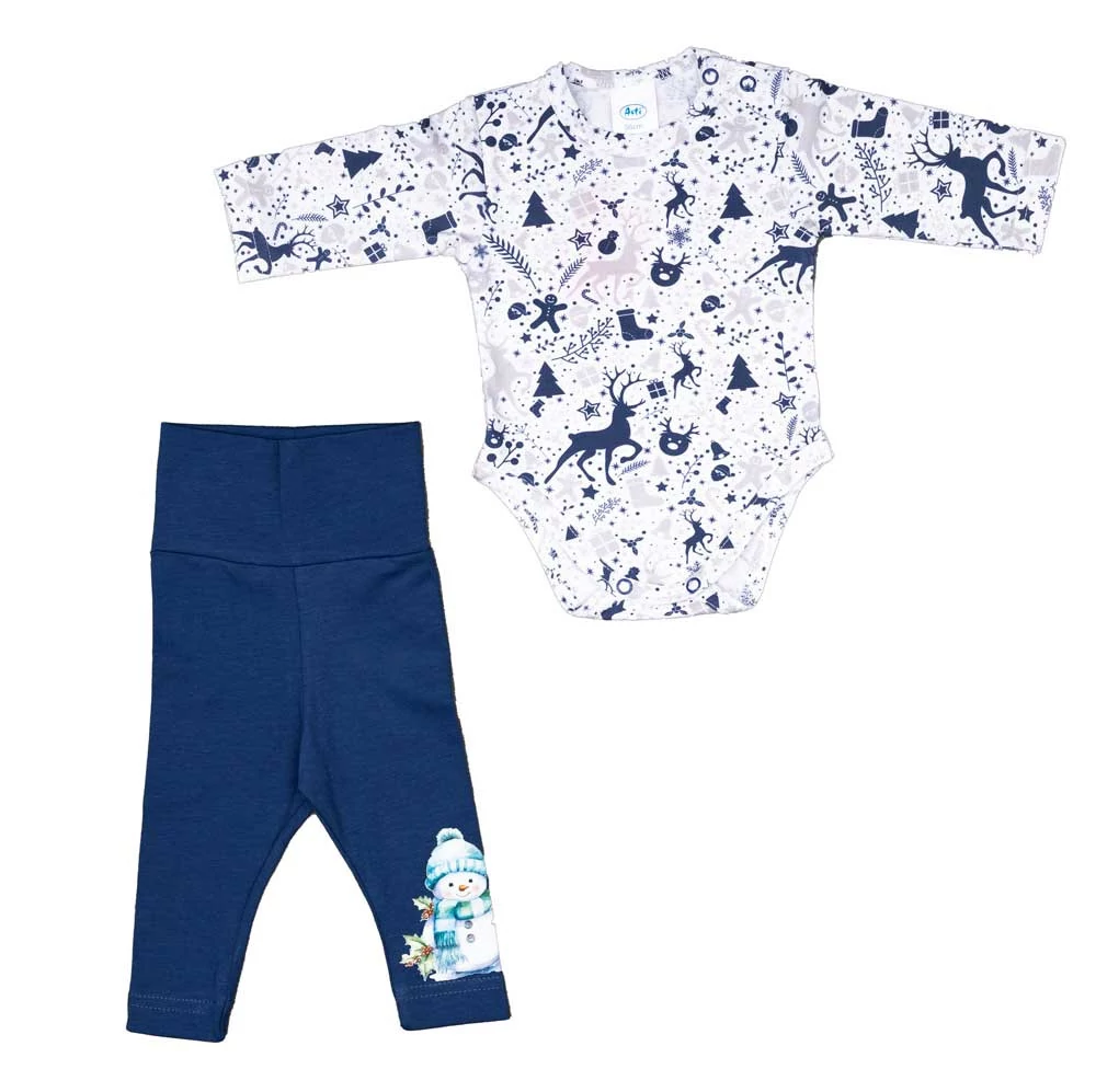 Karácsonyi 2 részes baba szett Ünnepelje karácsonyt ezzel a kétrészes baba szettel, aranyos karácsonyi mintával díszített fehér body, és a kényelmes baba nadrág igazán vagány és hangulatot kölcsönöz viselőjének. Mindkét darab finom pamut anyagból készült, a nadrág rugalmas pamutja pedig szabad mozgást biztosít a babának. A szett kiváló minőségű, jól mosható, szín- és formatartó anyaga miatt nemcsak a babák, de az anyukák kedvence is lesz! Ne csak a karácsony legyen különleges, varázsolja minden napot ünneppé ezzel a csodálatos babaszettel! A body 100% pamutból, a nadrág 90% pamutból és 10% elasztánból készült, ezáltal biztosítva a kiváló minőséget. A termék nikkelmentes patenttal készül, így az érzékeny babák sem fognak allergiás reakciót tapasztalni.