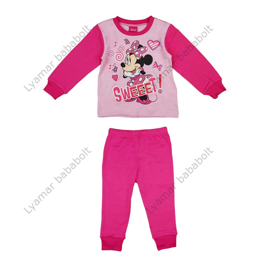 Hozd mesés álmaikhoz közelebb kislányodat ezzel a vidám Minnie egér mintás kétrészes pizsamával! Az eredeti Disney termék lányos színvilága és az ikonikus Minnie egér karaktere garantáltan mosolyt csal az arcára. A pizsama 100% minőségi pamutból készült, ami szín- és formatartó, valamint könnyen kezelhető. Tökéletes választás az esti meséhez, vagy a hétvégi reggeli pancsoláshoz. Kényelmes viseletet biztosít, hogy gyermeked éjszakái nyugodtak és pihentetőek legyenek. Hiszen tudjuk, hogy a jó alvás elengedhetetlen a napi energiaszint fenntartásához. Minőségi magyar termék, melyet büszkén ajánlunk minden kislánynak. Anyaga: 100% pamut. Minőség: I. osztály.