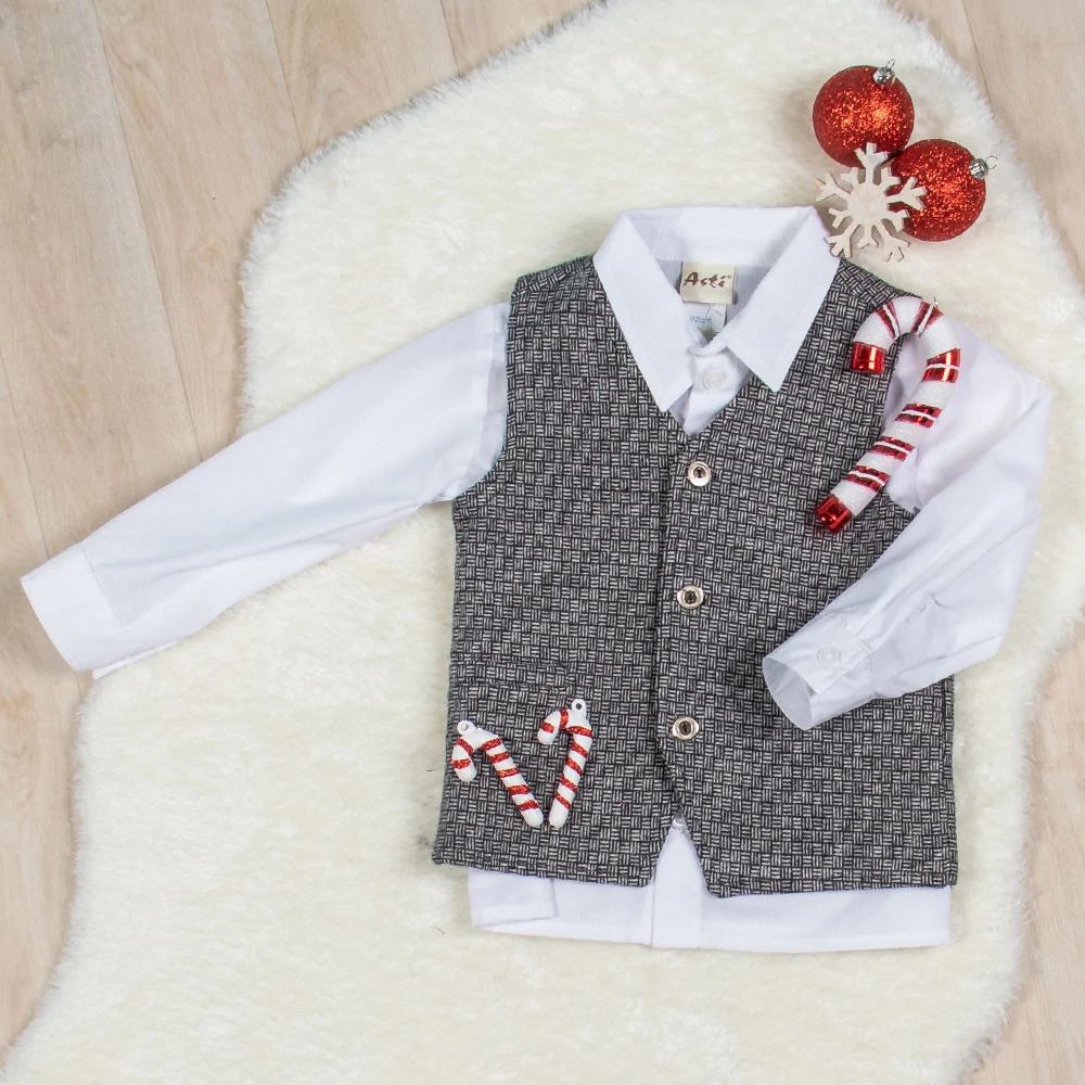 Elegáns, de játékos stílust kölcsönöz a kisfiúknak ez a szürke kockás alkalmi mellény. Gondosan megtervezett, elől gombos kialakítású, zsebekkel ellátott, melyekbe kedvenc kincseiket rejthetik. Különleges alkalmakra vagy családi eseményekre tökéletes választás, hogy gyermeked a legstílusosabb legyen. Az anyagösszetétel 90% pamut és 10% elasztán, ami a kényelmet és a tartósságot biztosítja. Bízd a minőségre a legkisebbek stílusát is! Ez a mellény az Andrea Kft. gondos kezei által készült itthon, Magyarországon, első osztályú minőségben. A magyar termékek megbízhatósága és kiváló minősége garantált.