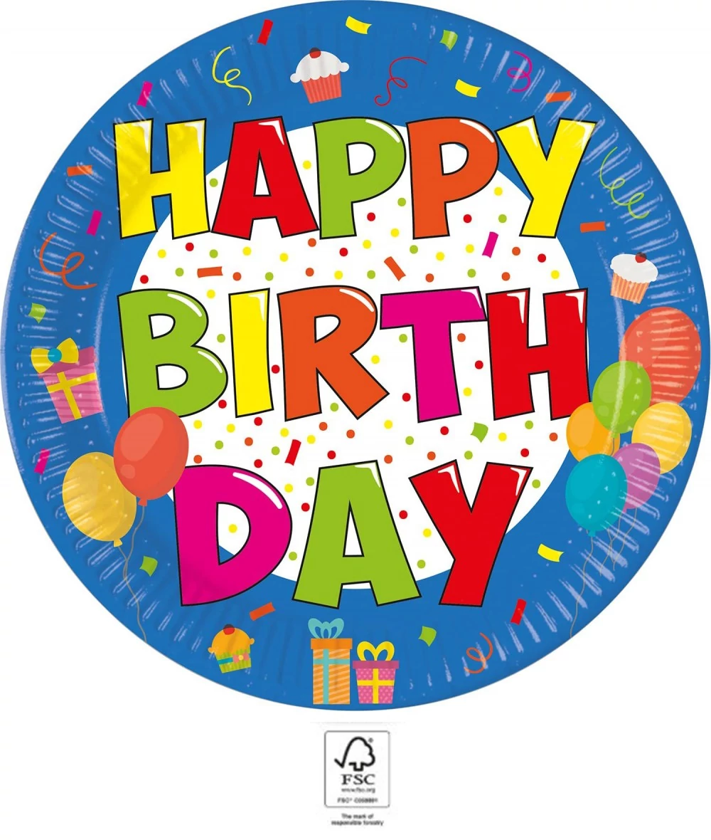 Kokliko Happy Birthday Papírtányér 8 db-os 20 cm FSC