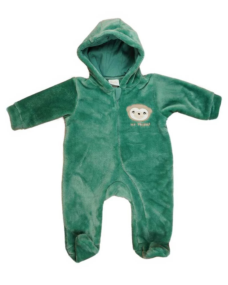 Öltöztesd az apróságot ebben a bájos zöld színű overálban, amelyet aranyos lajhár mintával hímeztek meg. A kapucnija és a lábfejes kialakítása biztosítja a teljes kényelmet és melegséget a hidegebb napokon. Az elülső cipzár pedig megkönnyíti a fel- és levételt. Ez a wellsoft anyagú overál nemcsak puha és kényelmes viseletet biztosít, hanem hosszú élettartamot is, mivel 100% poliészterből készült. Az overál a Astibababolt minőségi magyar terméke, így biztos lehetsz benne, hogy a legjobbat választod gyermeked számára.