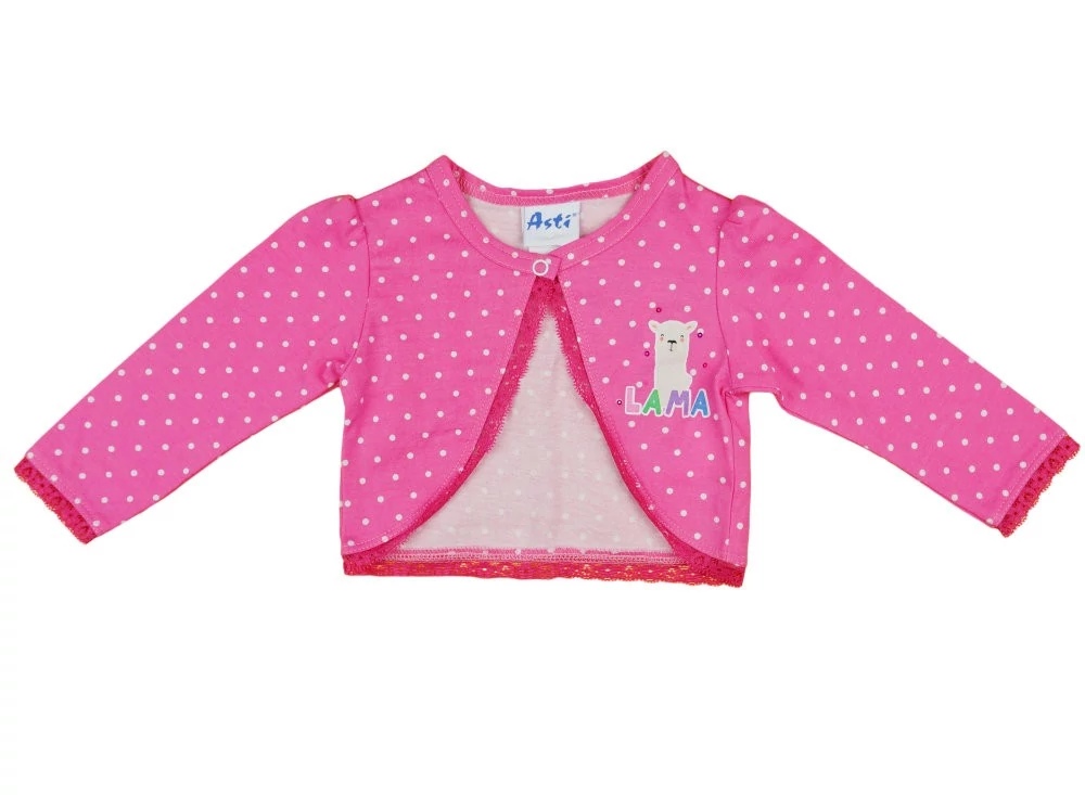Bájos láma mintás, pink színű boleróval varázsolja el kislányát! Ez a kiváló minőségű, 100% pamutból készült ruhadarab egészen biztosan az idei szezon egyik kedvence lesz. A boleró elől patentos, így könnyen fel- és levenhető, míg a flitterekkel díszített láma minta garantáltan mosolyt csal majd a kicsi arcára. Magyarországon gyártott termékről van szó, így vásárlásával hazai munkahelyeket támogat. Ne hagyja ki ezt a különleges darabot, mely minden kislány gardróbja számára nélkülözhetetlen!