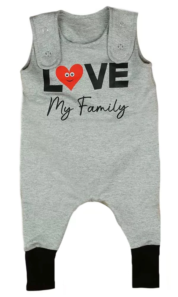 Love my family feliratos ujjatlan rugdalózó. A feliratos baba ujjatlan rugdalózó anyaga 100% pamut, mintája anyagba nyomott, tartós. A könnyű öltöztetést elősegítendően az ujjatlan rugdalózó vállon patentos. A termék nem tartalmaz nikkelt, az ujjatlan rugdalózónál használt patentok nikkelmentesek, így nem okoznak allergiás reakciót az arra érzékeny babáknál. Magyar termék.