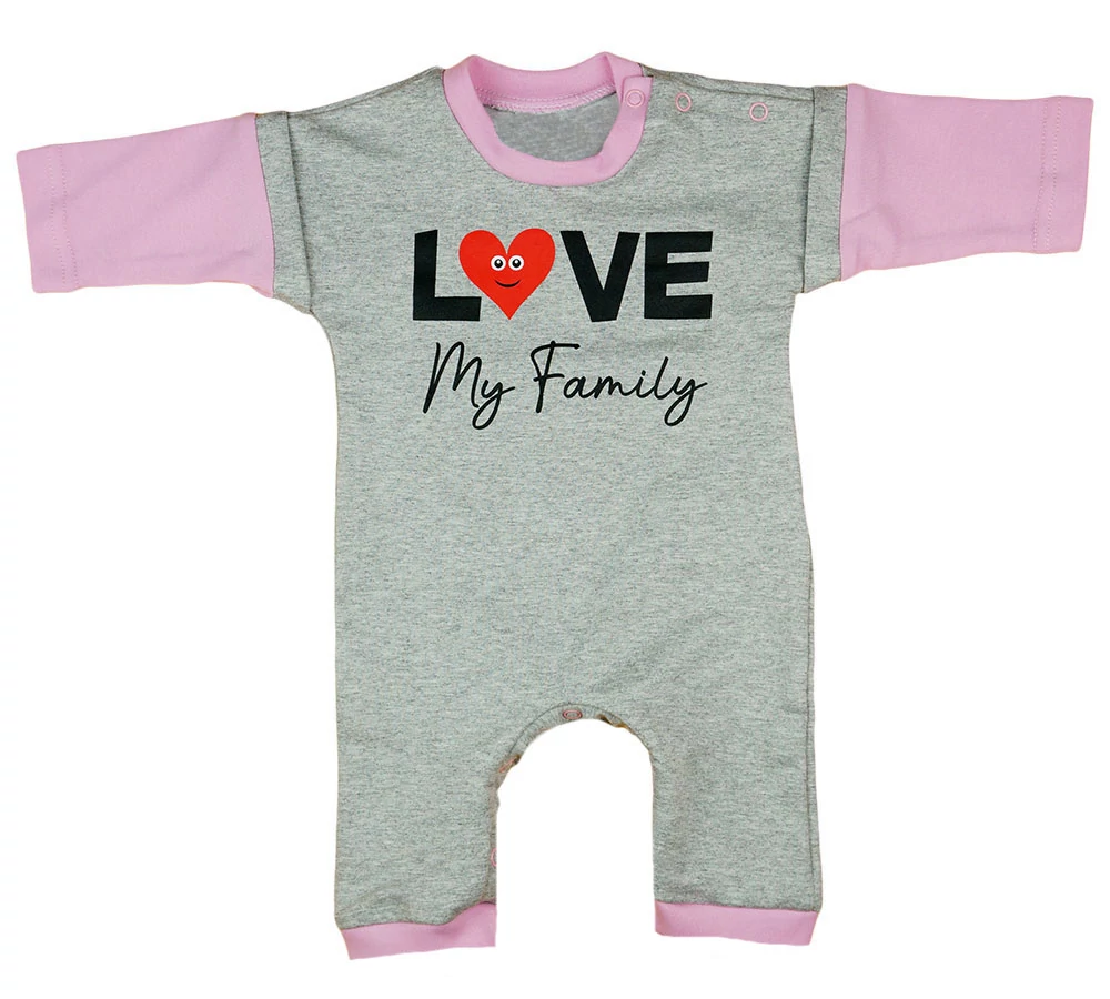 Love My Family feliratos hosszú ujjú baba rugdalózó