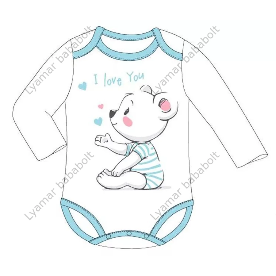 Macis hosszú ujjú baba body. Hosszú ujjú kombidressz, könnyen kezelhető 100% baba barát pamutból készült, praktikus és kényelmes alapdarabja a kisbaba ruhatárának. A pamut body a mese jellegzetes figuráját eleveníti meg. Mackó rajongók ruhatárának kihagyhatatlan darabja.