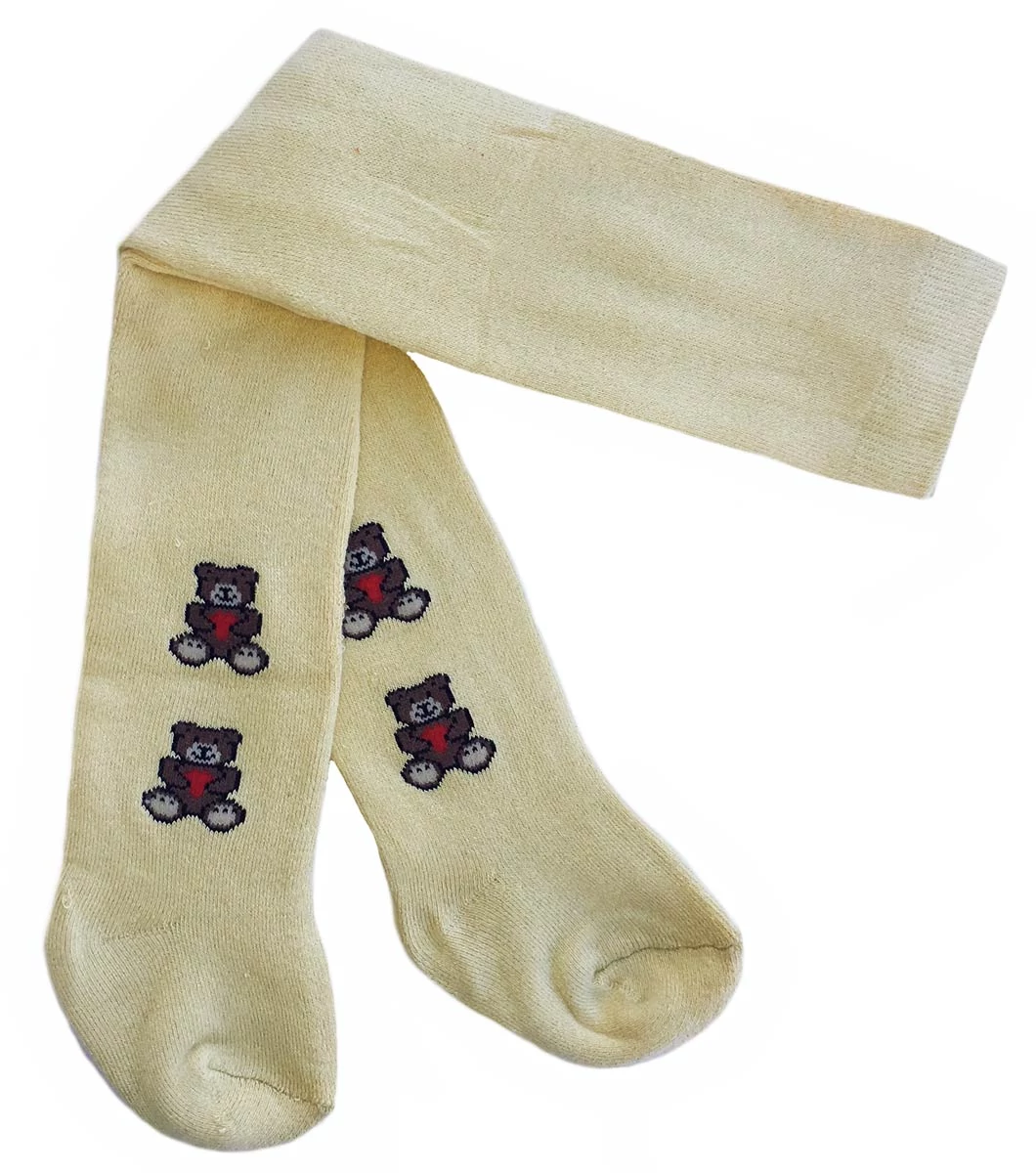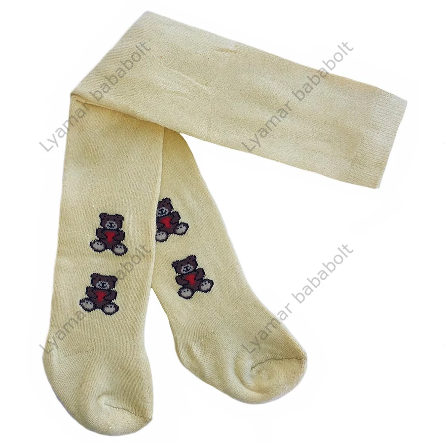 Halványsárga alapon, maci figurákkal díszített, vastag harisnyanadrág. Kellemes tapintású, kényelmes viseletű harisnya. Derékgumírozása tartós.