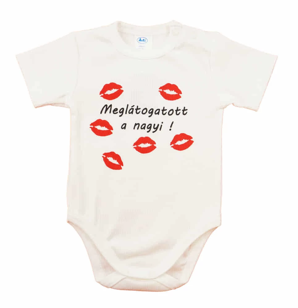 Egy igazán édes pillanatot örökíthetsz meg ezzel a rövid ujjú kombidresszel, melyen a 'Meglátogatott a nagyi!' felirat olvasható. A fehér színű, unisex darab minden baba szekrényében helyet érdemel. A dressz 100% pamutból készült, így garantáltan kényelmes viselet lesz a legkisebbek számára. Az Andrea Kft. minőségi, I. osztályú, magyar terméke, melyet nikkelmentes patenttal láttak el, így az erre érzékeny babáknál sem vált ki allergiás reakciót. Egy igazán praktikus és szívhez szóló viselet, mely tökéletes ajándék lehet az első nagymama-látogatásra!