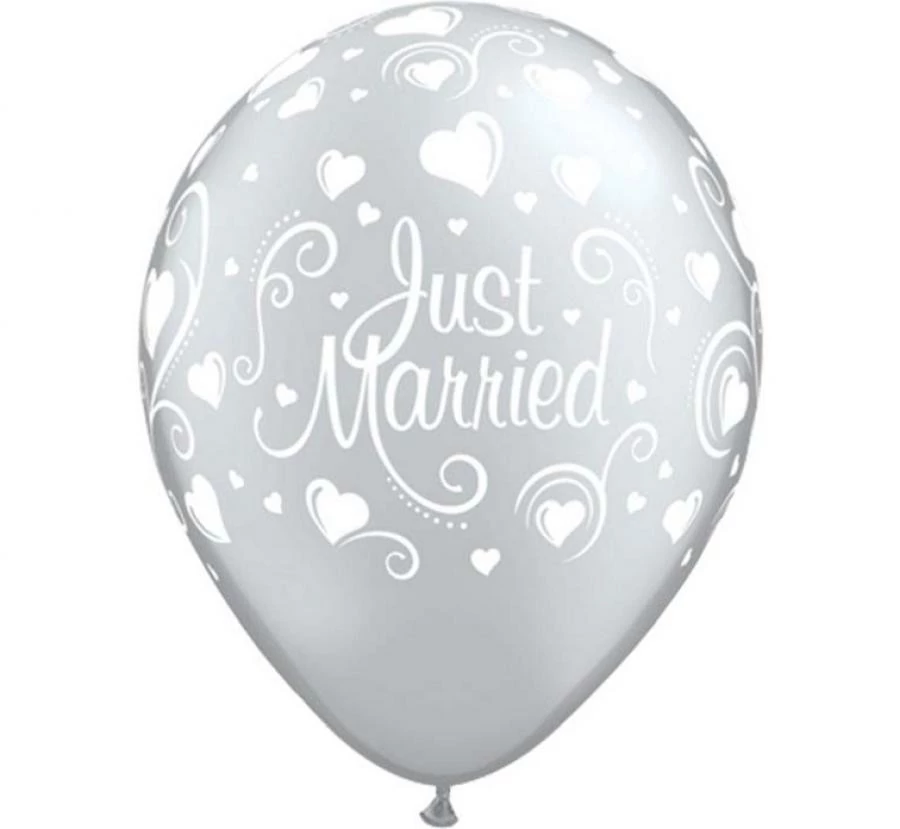 Metallic Just Married Hearts léggömb, lufi 6 db-os 11 inch (28cm)