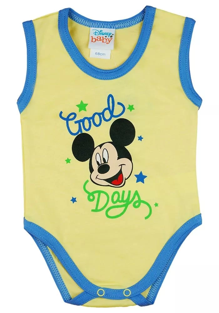 Disney Mickey egeres ujjatlan baba body. A pamut body a mese jellegzetes figuráját eleveníti meg. Disney Mickey rajongók ruhatárának kihagyhatatlan darabja. Magyar termék.
