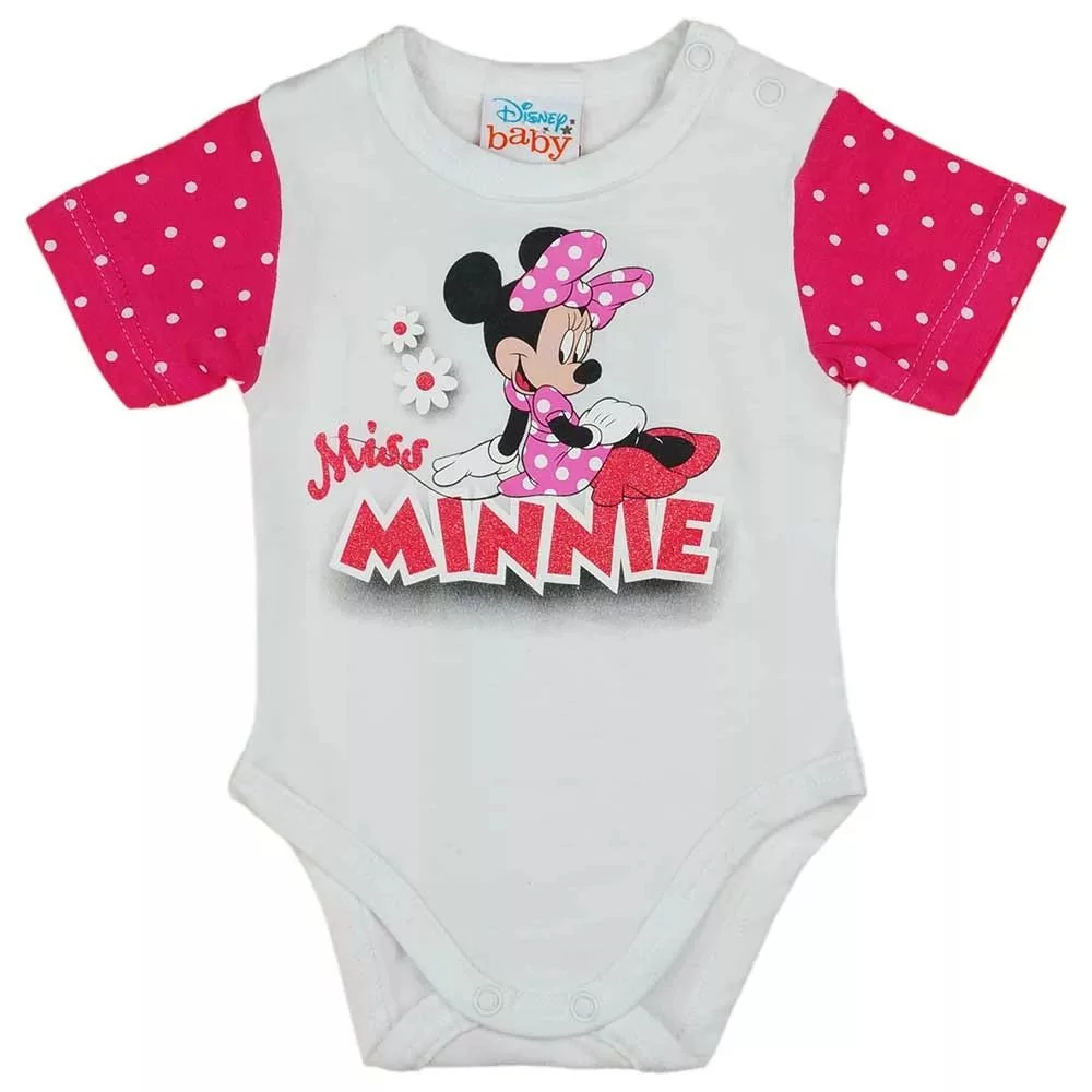 Disney Minnie egeres rövid ujjú pamut body. Rövid ujjú kislány kombidressz, könnyen kezelhető 100% baba barát pamutból készült, praktikus és kényelmes alapdarabja a kisbaba ruhatárának. A pamut body a mese jellegzetes figuráját eleveníti meg. Disney Minnie rajongók ruhatárának kihagyhatatlan darabja. Magyar termék.