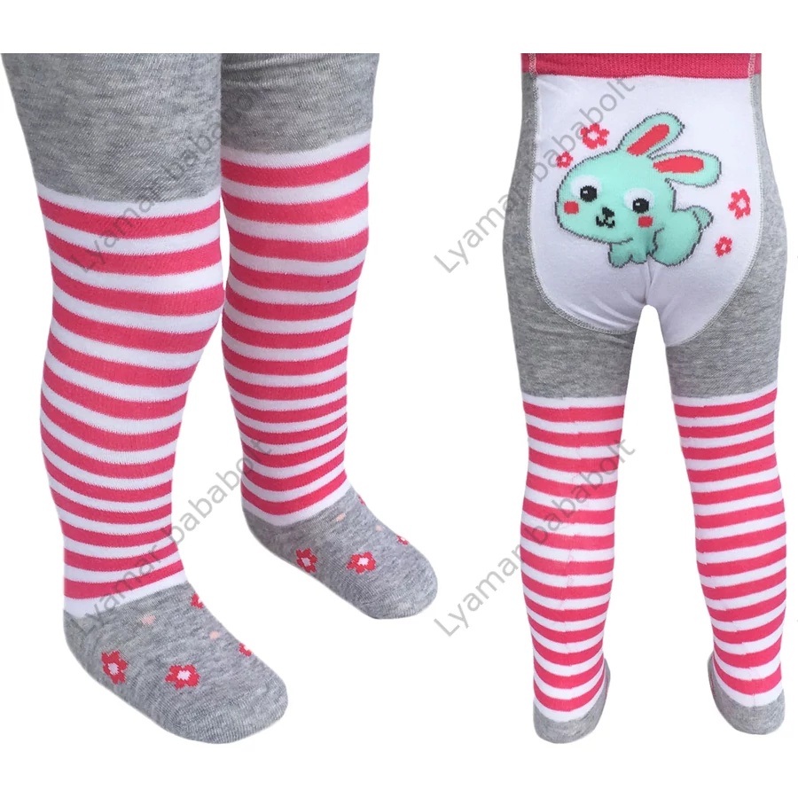 Nyuszi mintás lányka csúszásgátlós harisnyanadrág. A csúszásgátlós harisnya főmintája a harisnya fenekén nyuszi.
