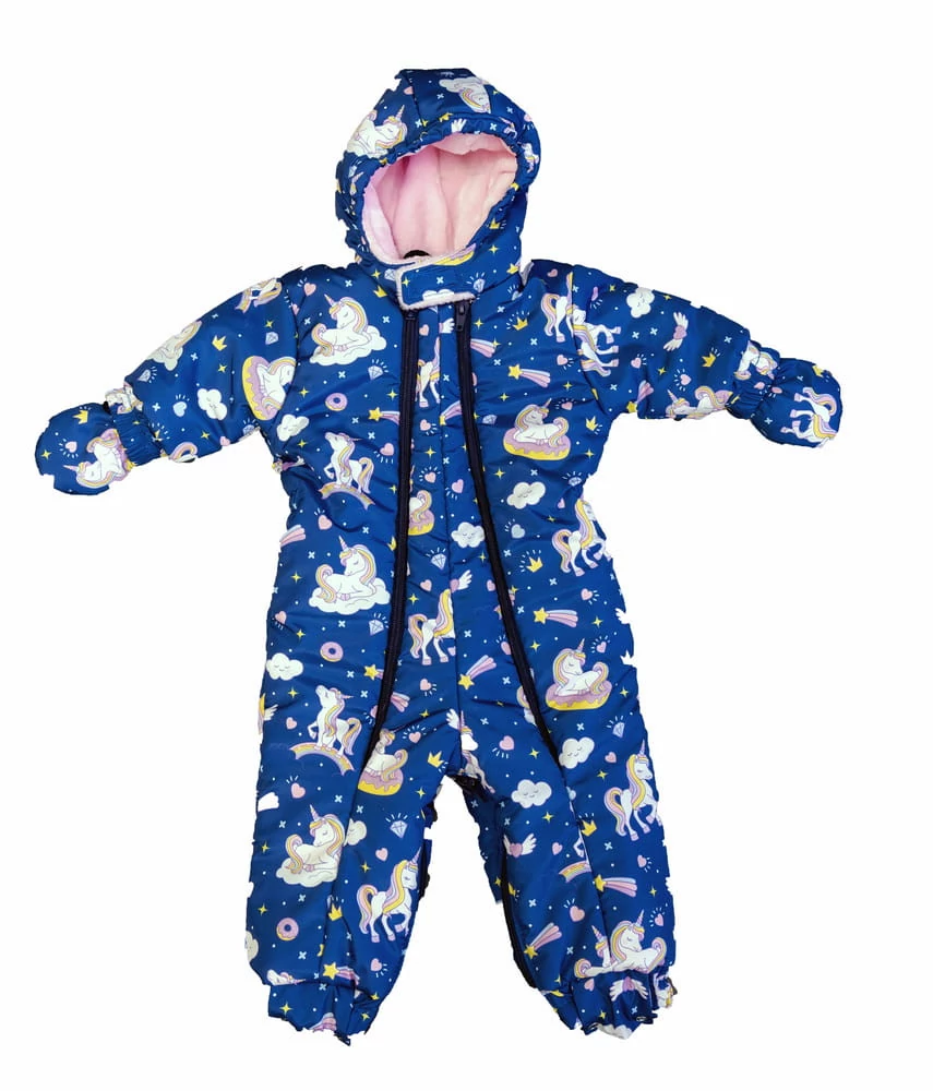 Egy igazán stílusos és praktikus választás a hideg hónapokra, ez cuki Unikornis mintás kapucnis overál. Az overál különlegessége, hogy bundazsákká alakítható, így a hideg téli napokon is tökéletesen megóvja a kicsiket a fagyos időtől. A vízlepergetős anyaga pedig biztosítja, hogy a hó és az eső sem árthat a kis játszadozóknak. A bélése a kényelmet és a meleget biztosítja. Az elöl található cipzár segítségével könnyedén bele tudja helyezni a babát, valamint a lábrész szétnyitható kialakítása révén a baba mozgását sem gátolja. Mindezek mellett cuki mintája teszi igazán divatossá és aranyossá ezt az overált. Tökéletes választás azok számára, akik nem akarnak kompromisszumot kötni a stílus és a kényelem között.