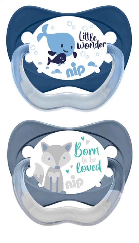 NIP Family szilikon játszócumi 0-6 hónapos korig ajánlott,2db-os kiszerelés.Ortodontikus formájúak.Anatómiai kialakítású cimipajzzsal és olyan cumi mimtákkal,amelyek mosolyt csalnak a gyermeke arcára,a speciális cumipajzs és a lehajtható gyűrű megakadályozza,hogy a baba arcán nyomás keletkezzen amikor hason fekszik.A különböző cumi méretek alkalmazásával kérjük,vegye figyelembe a gyermeke egyéni fejlődését.