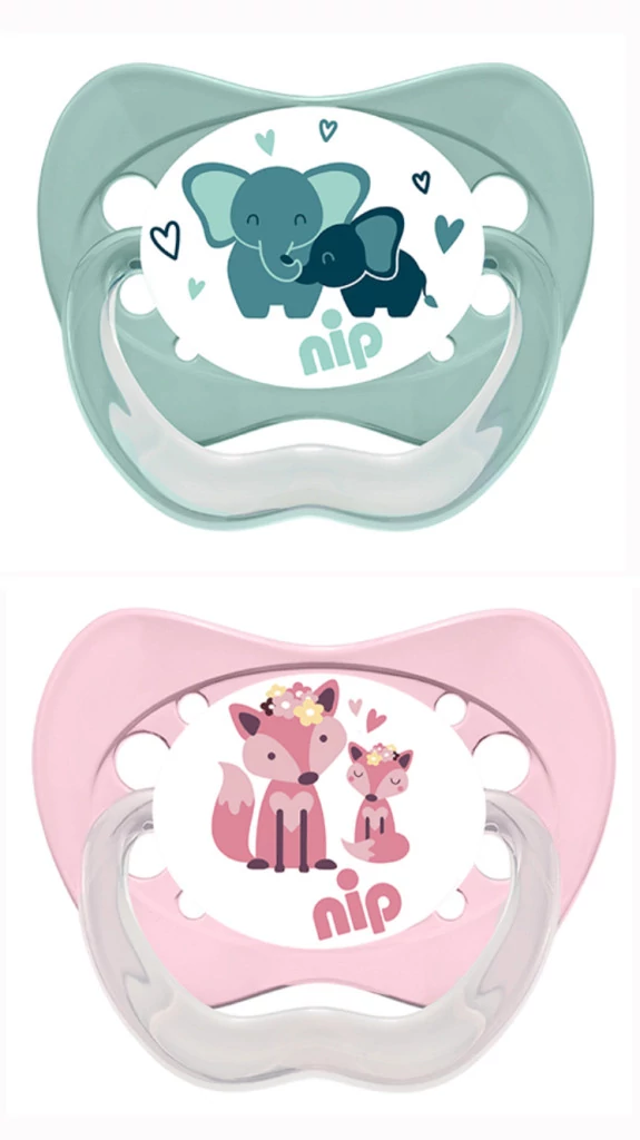 NIP Family szilikon játszócumi 0-6 hónapos korig ajánlott,2db-os kiszerelés.Ortodontikus formájúak.Anatómiai kialakítású cimipajzzsal és olyan cumi mimtákkal,amelyek mosolyt csalnak a gyermeke arcára,a speciális cumipajzs és a lehajtható gyűrű megakadályozza,hogy a baba arcán nyomás keletkezzen amikor hason fekszik.A különböző cumi méretek alkalmazásával kérjük,vegye figyelembe a gyermeke egyéni fejlődését.