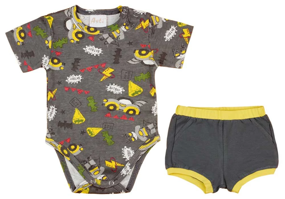 A forró nyári napokon nincs is jobb választás kisfiúnknak, mint ez a kétrészes szett, mely egy rövid ujjú bodyból és rövidnadrágból áll. A szett szürke alapszíne igazán elegáns és univerzális, így bármilyen alkalomhoz tökéletesen passzol. A body 100% pamutból készült, ami garantálja, hogy kisfiunk egész nap komfortosan érezze magát benne. A rövidnadrág a kellemes viselet érdekében enyhén rugalmas pamutanyagból készült, biztosítva a szabad mozgást és a maximális kényelmet. A szettet tovább emeli a vagány Batman minta, ami minden kisfiú kedvence. A könnyen kezelhető, jól mosható, szín- és formatartó pamutanyag hosszú élettartamot biztosít a szettnek. Mindez egy minőségi, 100% magyar termékben, ami minden szülő számára fontos szempont.