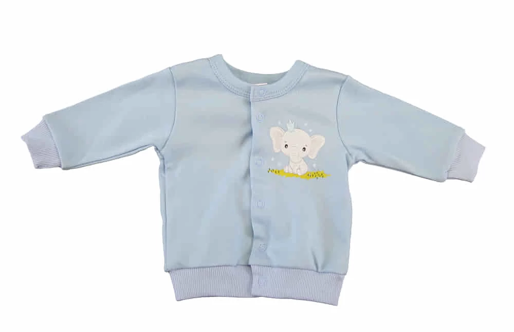 Pamut baba kocsikabát Elefántos mintával Cuki és trendi elöl patentos kisfiú pamut kocsikabát. Jól kihasználható, praktikus alapdarabja lehet gyerekünk ruhatárának. Elején cuki kiselefánt figurával nyomva. Anyaga vékonyabb pamut, mely tökéletes viselet tavaszi-őszi napokra, de hűvösebb nyári estékre is jól jöhet. Könnyen kezelhető, szín- és formatartó minőségi pamut anyagból készült. Minőségi magyar termék Anyaga: 100% pamut Minőség: I. osztály A termék nikkelmentes patenttal készül. A patent nem tartalmaz nikkelt, ezért nem vált ki allergiás reakciót az erre érzékeny babáknál.