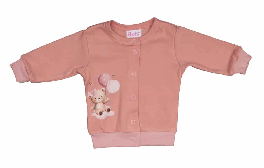 Pamut baba kocsikabát Macis mintával Cuki és trendi elöl patentos kislány pamut kocsikabát. Jól kihasználható, praktikus alapdarabja lehet gyerekünk ruhatárának. Elején cuki macis figurával nyomva. Anyaga vékonyabb pamut, mely tökéletes viselet tavaszi-őszi napokra, de hűvösebb nyári estékre is jól jöhet. Könnyen kezelhető, szín- és formatartó minőségi pamut anyagból készült. Minőségi magyar termék Anyaga: 100% pamut Minőség: I. osztály A termék nikkelmentes patenttal készül. A patent nem tartalmaz nikkelt, ezért nem vált ki allergiás reakciót az erre érzékeny babáknál.