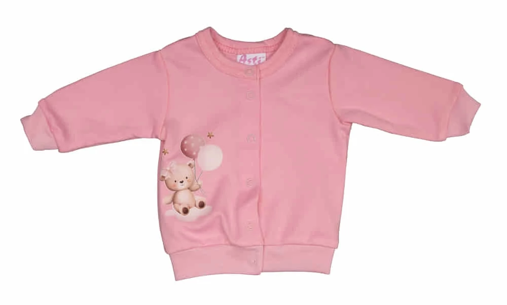 Pamut baba kocsikabát Macis mintával Cuki és trendi elöl patentos kislány pamut kocsikabát. Jól kihasználható, praktikus alapdarabja lehet gyerekünk ruhatárának. Elején cuki macis figurával nyomva. Anyaga vékonyabb pamut, mely tökéletes viselet tavaszi-őszi napokra, de hűvösebb nyári estékre is jól jöhet. Könnyen kezelhető, szín- és formatartó minőségi pamut anyagból készült. Minőségi magyar termék Anyaga: 100% pamut Minőség: I. osztály A termék nikkelmentes patenttal készül. A patent nem tartalmaz nikkelt, ezért nem vált ki allergiás reakciót az erre érzékeny babáknál.