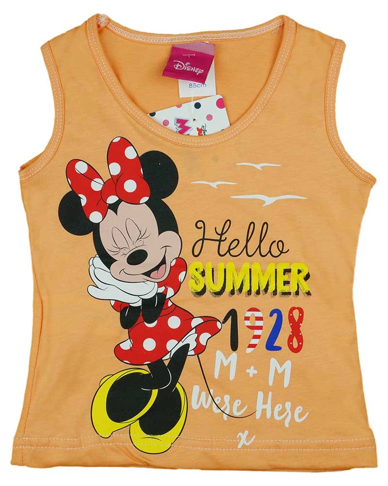 Kislányodnak szeretnél valami vidám, nyári viseletet? Akkor ez a Minnie egér mintás ujjatlan trikó tökéletes választás lesz! A rózsaszínű, 100% pamutból készült top remekül mutat a forró nyári napokon, miközben a gyermeked bőrét kényelmesen, légáteresztően öltözteti. A minta Minnie egér vidám arckifejezését ábrázolja, mely minden kislány mosolyát garantáltan előcsalogatja. Az eredeti Disney termék garantálja a minőséget és tartósságot, így a trikó mosás után is megőrzi színét és formáját. Büszkék vagyunk rá, hogy ez a termék magyar gyártású, így vásárlásod támogatja a hazai gyártókat. Kényeztesd gyermeked minőségi, hazai termékkel, ami mellett nem kell lemondanod a kedvenc Disney karakterekről sem!
