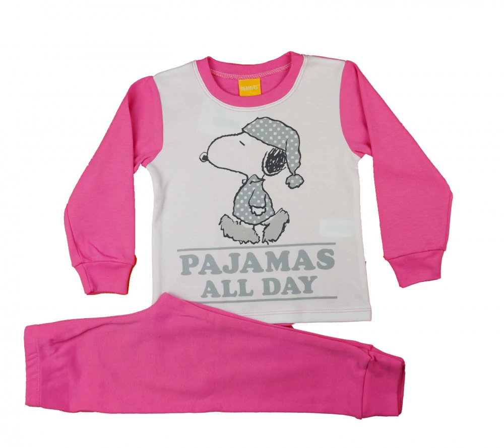 Engedd meg, hogy bemutassuk a tökéletes éjszakai viseletet a kis álmodozódnak! A világos rózsaszínű, Snoopy mintás pamut pizsamánk garantáltan a gyermeked új kedvence lesz. Kétrészes kialakítása és 100% minőségi pamut anyaga biztosítja a kényelmet és a puhaságot egész éjszaka. Szín- és formatartó tulajdonságának köszönhetően a pizsama hosszú ideig megőrzi eredeti formáját és ragyogó rózsaszín árnyalatát, így minden esti lefekvésnél úgy érezheti gyermeked, mintha újonnan venné fel. Ráadásul, könnyen kezelhető, így a mosás és szárítás sem jelent majd gondot. Minőségi magyar termék, amelyet a legnagyobb szeretettel készítünk a legkisebbekért. Anyaga első osztályú, 100%-os pamut. A gyönyörű éjszakákat Snoopy-val!