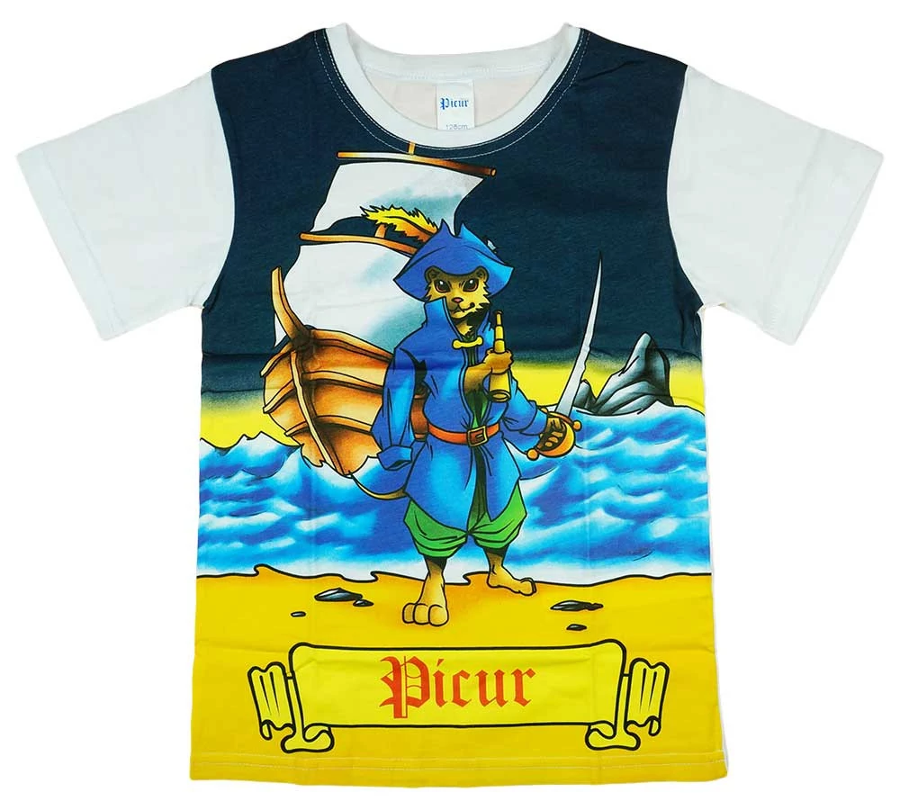 A kis kalózoknak is szükségük van stílusos öltözékre! Ez a "Picúr és a kalózok" mintával ellátott rövid ujjú póló tökéletes választás minden kis kalandor számára. A póló fehér színű, ami kiemeli a rajta lévő vidám, színes mintát. Az anyaga 100% pamut, így kényelmes viselet lesz a nyári hőségben is. Az I. osztályú minőség garantálja, hogy a póló sok viselés és mosás után is megőrzi szép színét és formáját. A termék mérete 110-134 között változik, így bármelyik kis kalóznak ideális választás lehet. Az életkor csak irányadó, a legfontosabb, hogy a póló kényelmesen illeszkedjen a gyermekre.