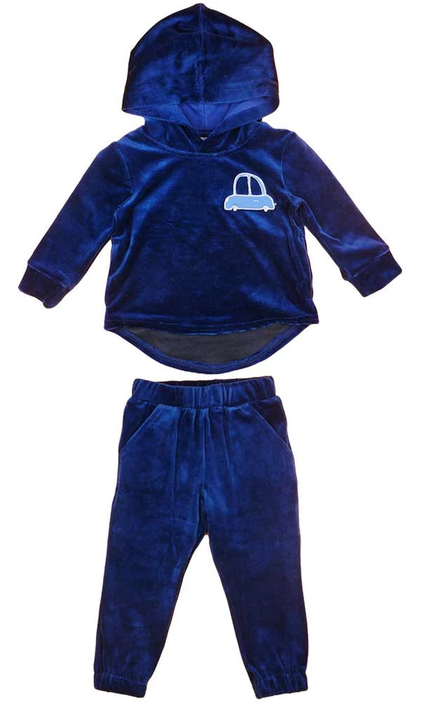 Fedezze fel a minőségi magyar gyártású plüss baba kisfiú szabadidő szettet, melynek autós mintája garantáltan elnyeri kisfiának tetszését. A kék színű, kapucnis felső rész és a gumis derekú, oldalt zsebes plüss nadrág nem csak kényelmes viseletet biztosít, de a 80% pamut és 20% poliészter anyagösszetételnek köszönhetően puha tapintású és strapabíró is. Az autós minta hímzése ügyel a részletekre, így a szett minden darabja igazán egyedi. A termék I. osztályú minősítést kapott, tehát biztos lehet benne, hogy gyermekének csak a legjobbat adja. Gyártója az Andrea Kft., ami garancia a magas színvonalra.